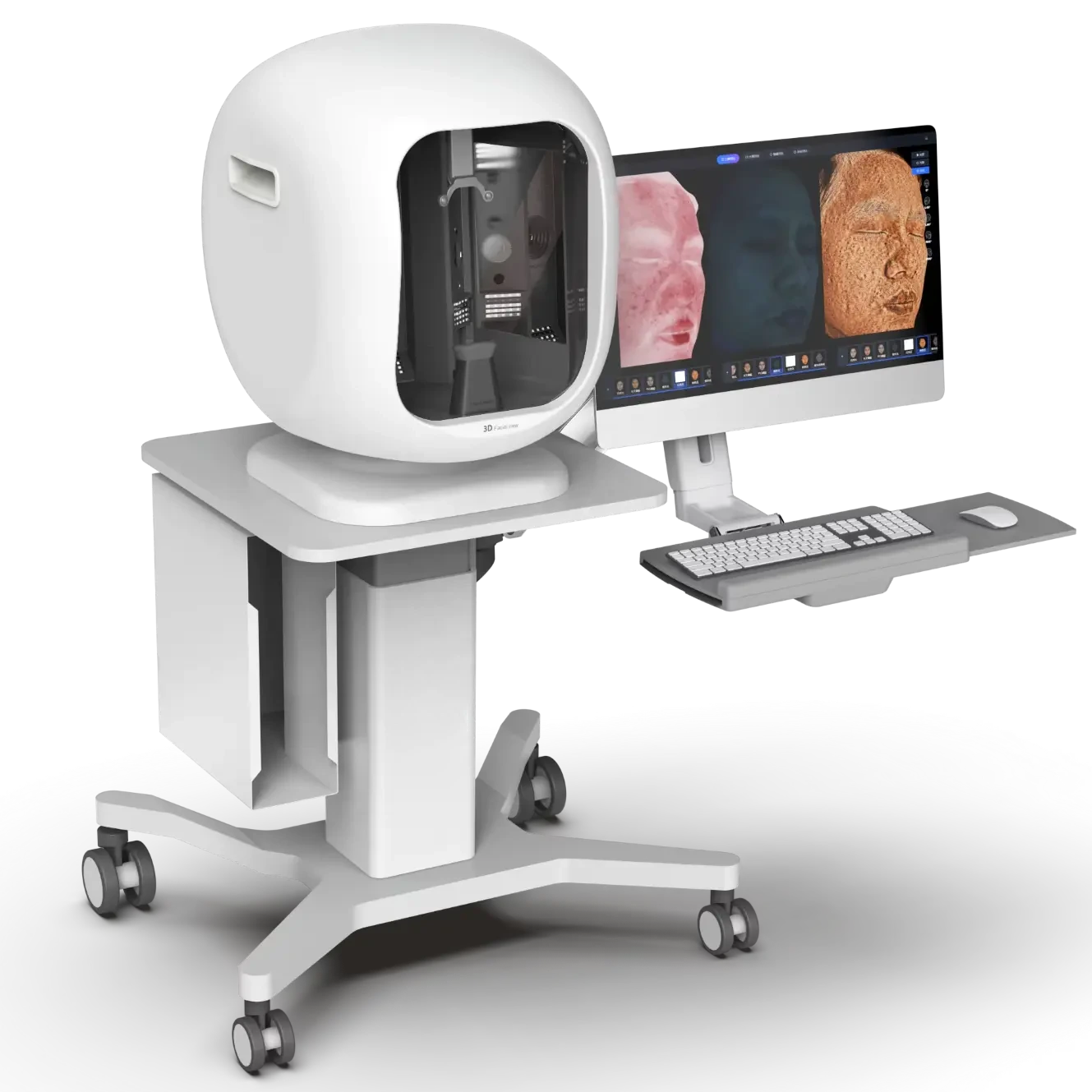 Le Vision X est un analyseur 3D haute précision conçu pour les cliniques et cabinets de médecine esthétique. Grâce à une caméra 30 mégapixels et à la technologie multi-spectrale (lumière naturelle, polarisée, UV, croisée), il capture des images ultra-détaillées du visage en seulement 8 secondes.